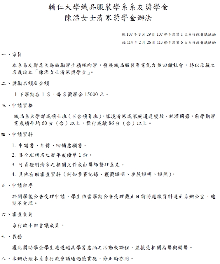 1142 陳漂女士清寒獎學金~5/26中12:00截止