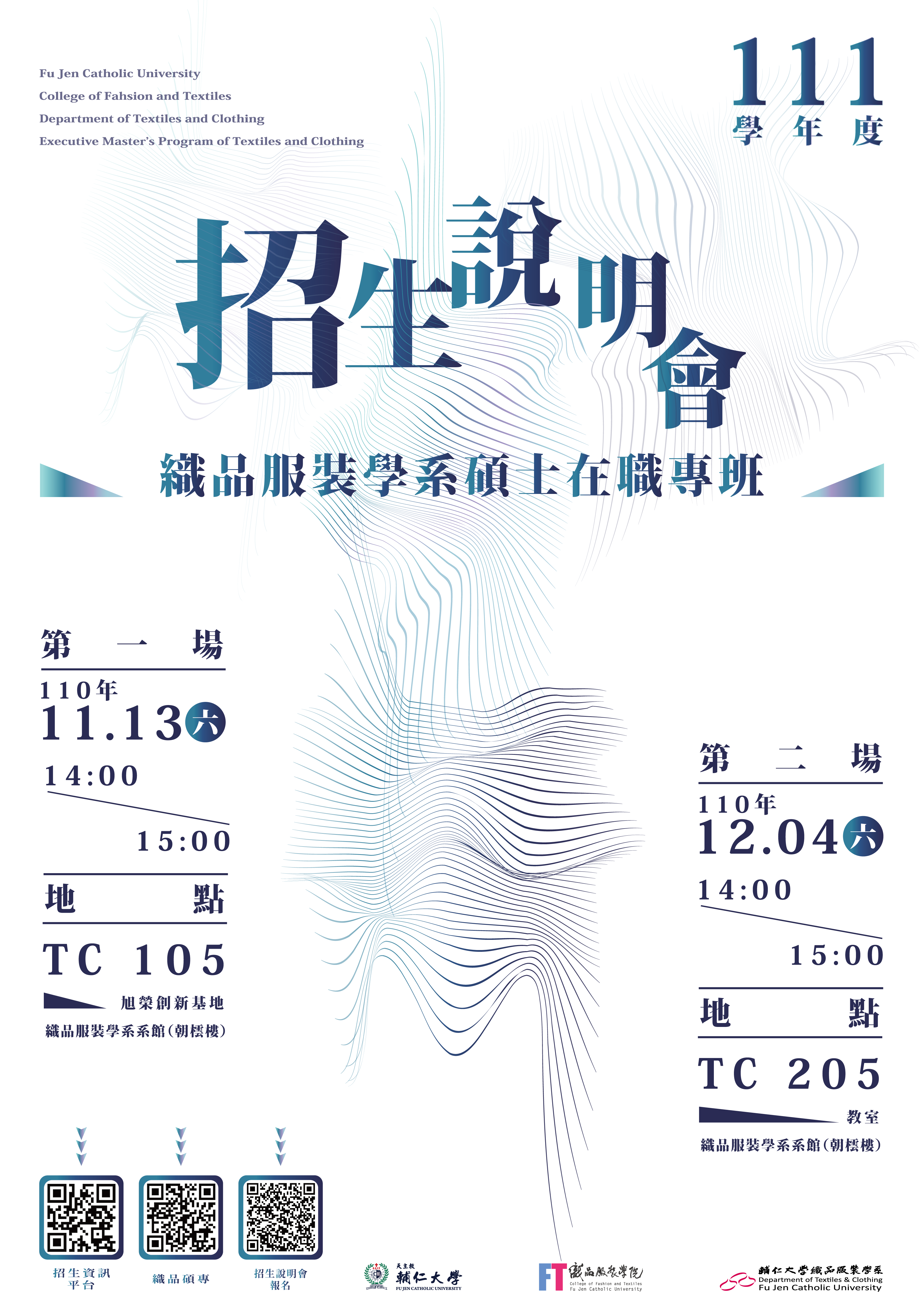 場次一:110年11月13日(六) 14:00-15:00/朝橒樓TC105 場次二:110年12月04日(六) 14:00-15:00/朝橒樓TC205 報名連結:https://forms.gle/hqvZtowbcW7aCMQo8 簡章資訊:https://exam.fju.edu.tw