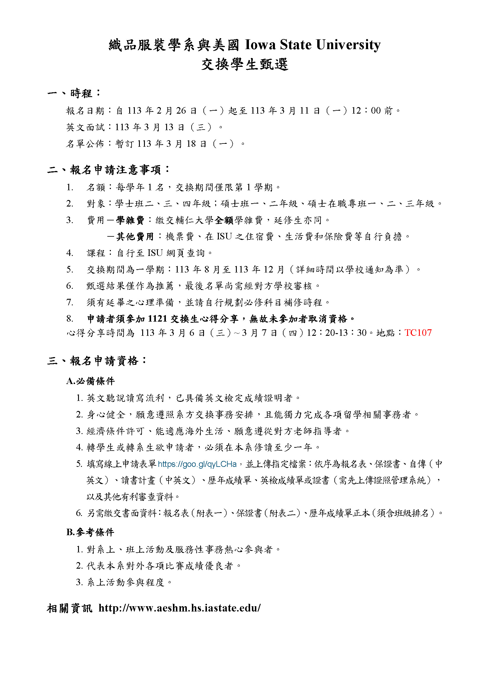 1131美國Iowa State University交換學生申請~3/11中午12:00截止