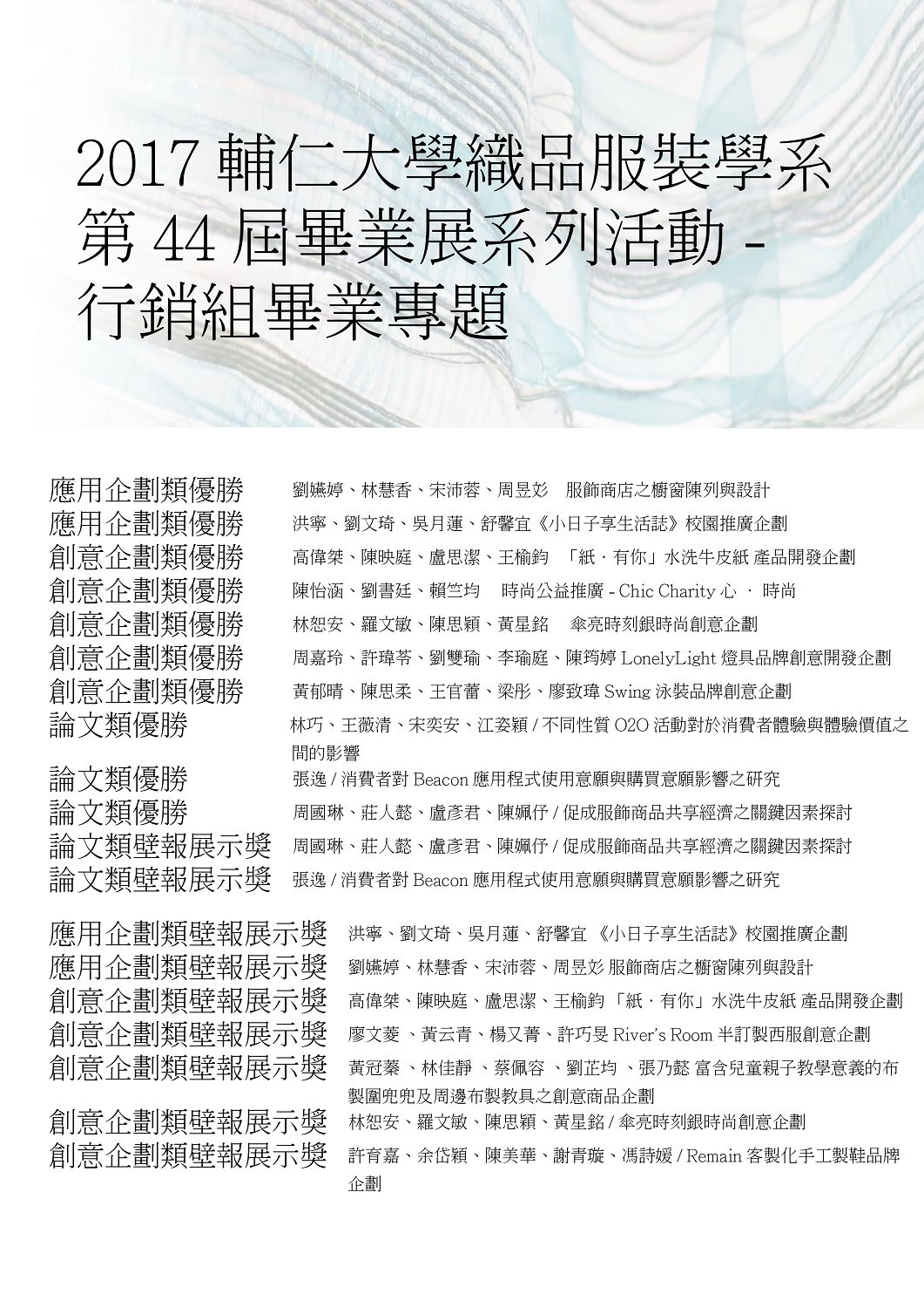2017織品服裝學系 第44屆畢業展系列活動(得獎者請至系辦領取獎狀)