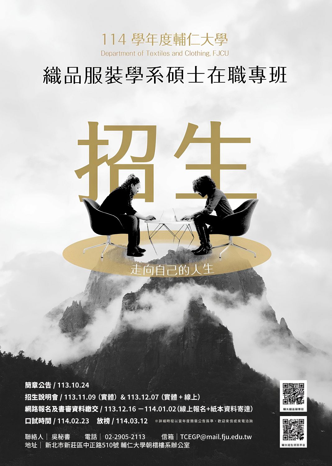 吳秘書 (02)2905-2113;TCEGP@mail.fju.edu.tw