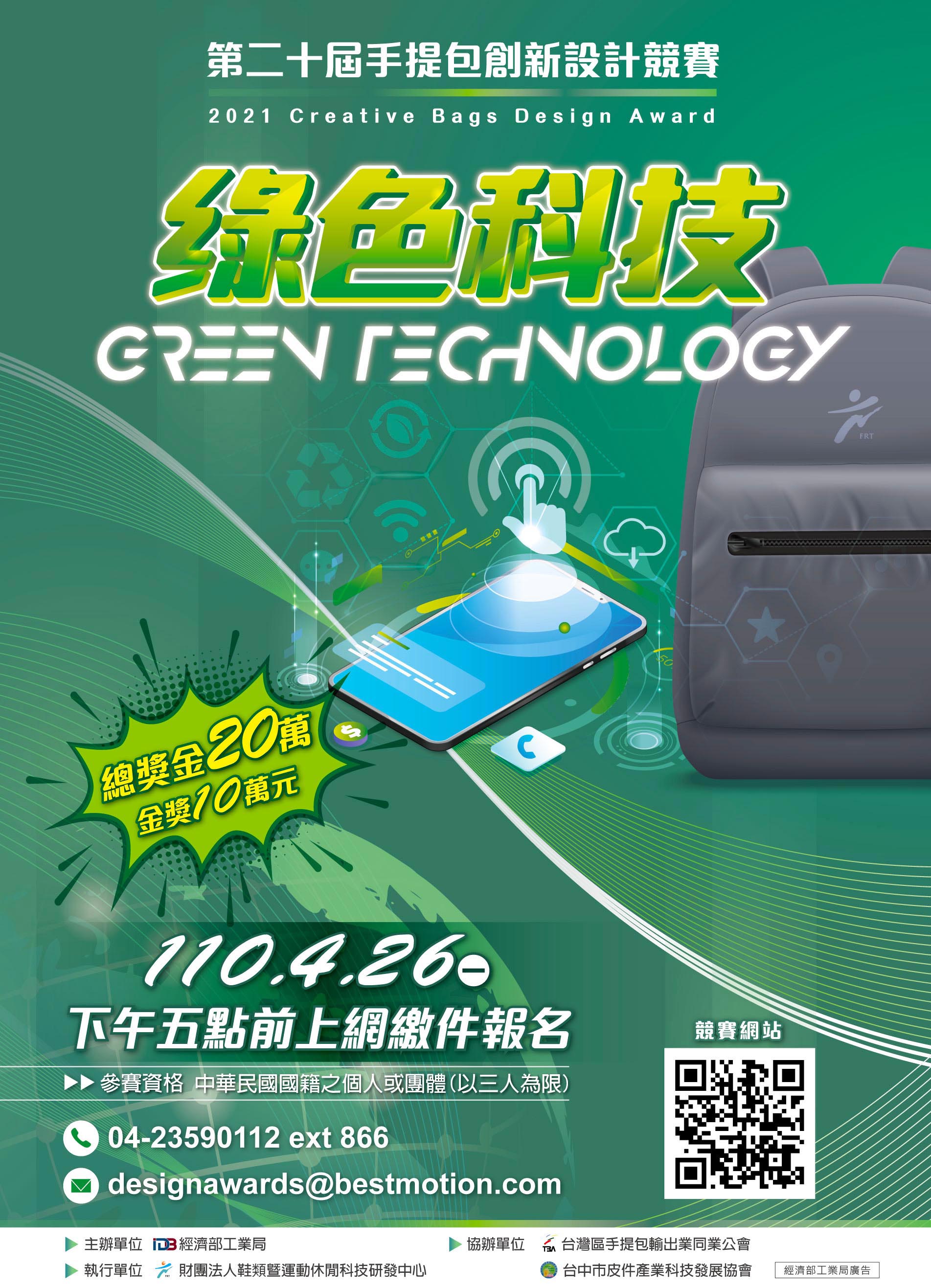 ”2021年第20屆手提包創新設計競賽”,請您多多鼓勵學生報名參賽,累積設計經驗。