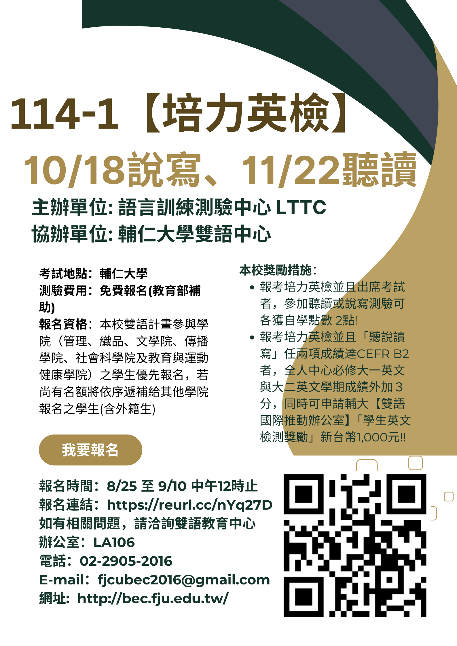 三大好康:免報名費!考場在輔大!達標贏獎金!