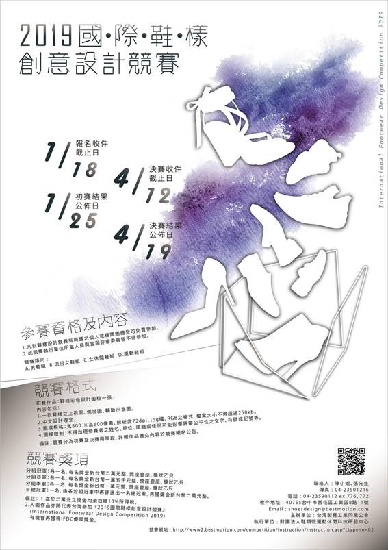 最新消息 最新公告 榮譽榜 活動公告 競賽資訊 課程公告 新生專區 獎助學金 企業求才 實習事務 展演資訊 系友動態 《2019 國 際 鞋 樣創意設計競賽》 ATTACHMENTS 2019國際鞋樣創意設計競賽簡章.doc SHARE