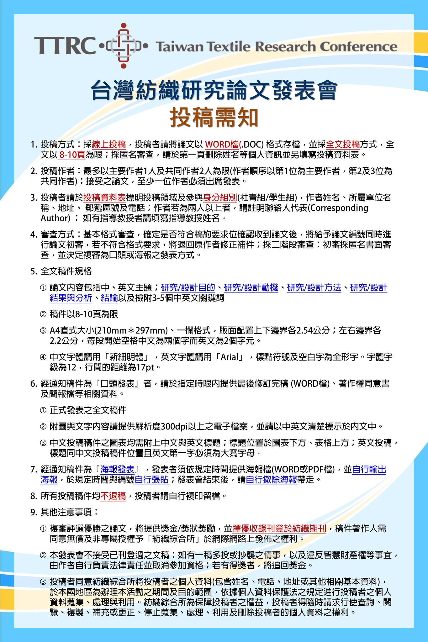 徵稿說明與投稿須知請參閱附件說明,若有任何修改與說明,皆以徵稿網站公告為主。