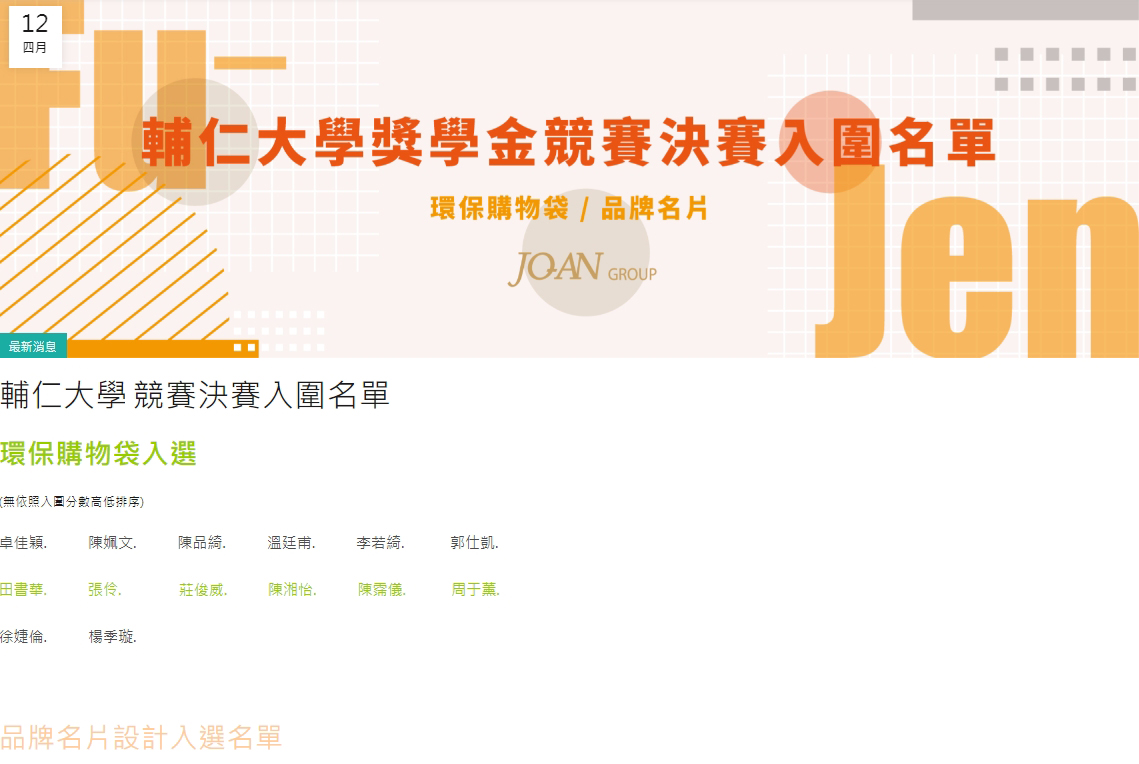 收件延至5/12(內含連結及相關收件資訊)瓊安戶外輕便購物提袋設計競賽暨名片設計競賽決賽入圍名單