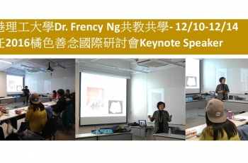 香港理工大學Dr.Frency Ng共教共學-12/10-12/14擔任2016橘色善念國際研討會Keynote Speaker