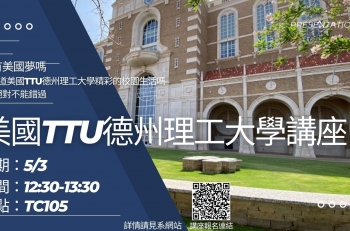 美國TTU德州理工大學講座報名~5/1(一)截止