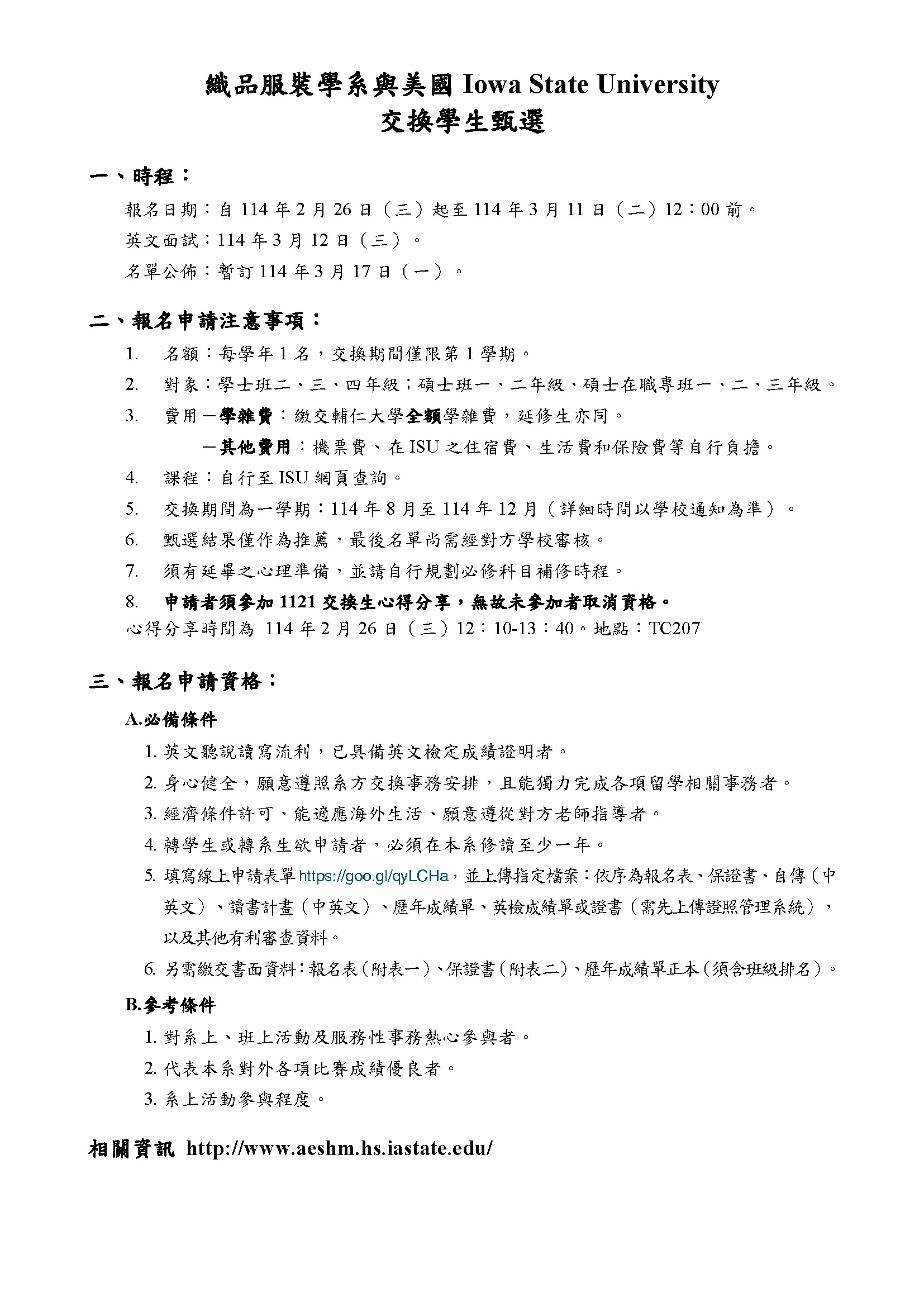 1141美國Iowa State University交換學生申請~3/11中午12:00截止